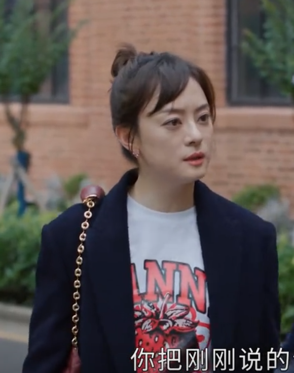 大家在参考这件服装时,也可以像胡曼黎一样,把头发扎起来,把脖子露出来,这样显得更加干净利落。